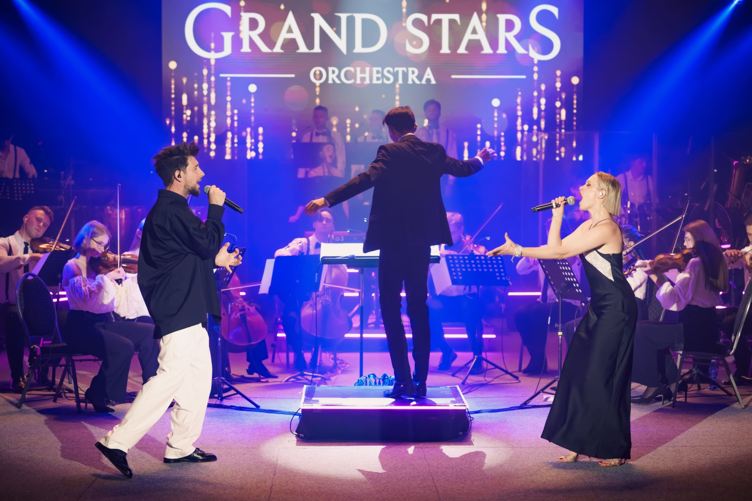 Výnimočnú atmosféru vystúpeniam The Grand Stars Orchestra dodávajú výnimoční sólisti: charizmatická speváčka Margarita Meleshko s mocným hlasom a výraznou charizmou a virtuózny spevák Eugene Sharmanov, známy svojím výrazným zafarbením hlasu a emotívnou hĺbkou prejavu. Ich duety a sólové čísla sú skutočnými perlami každého koncertu.